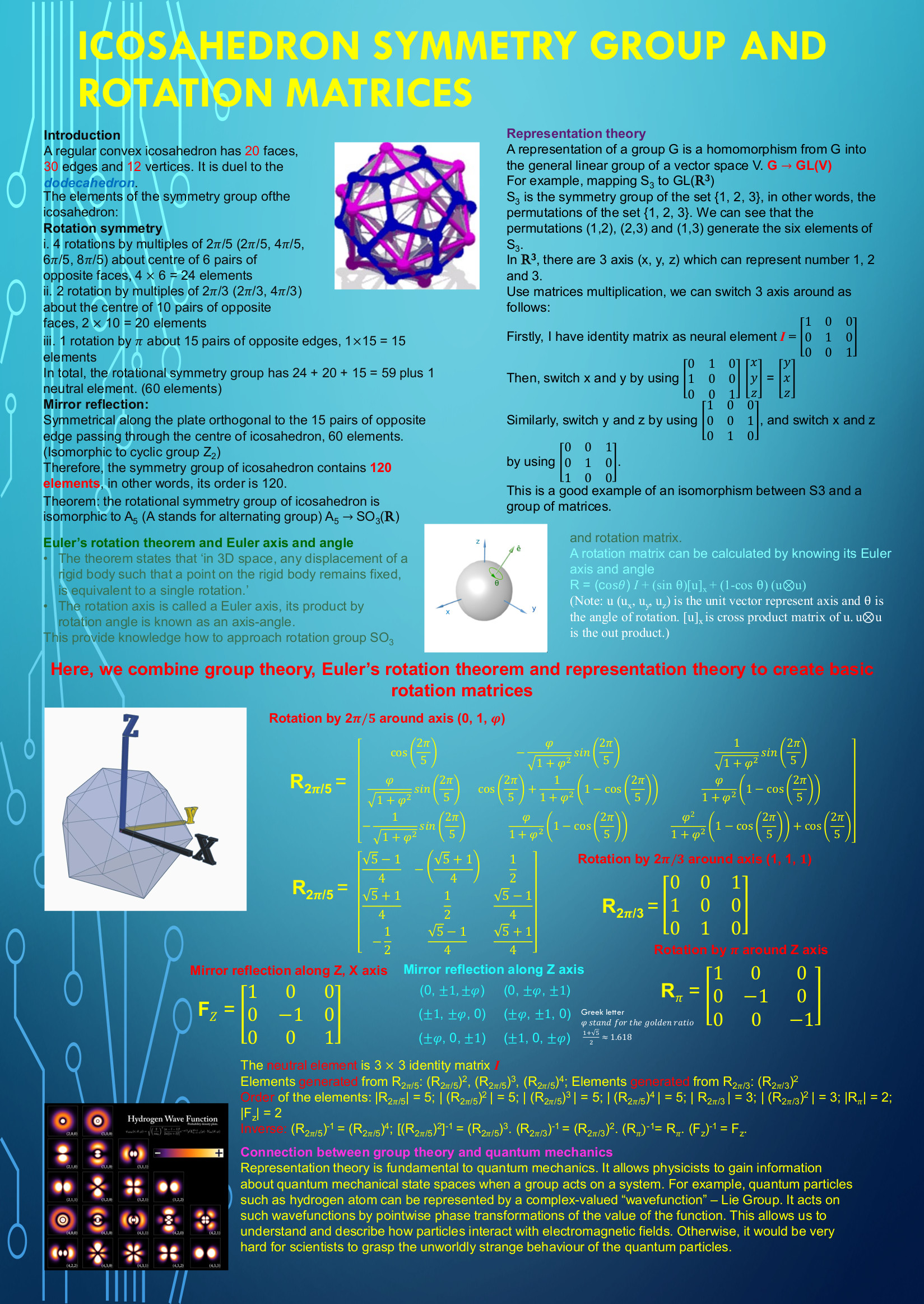 In this summer project, the above first-year students explored the mathematical formalisation of the everyday notion of symmetry, which is the algebraic concept of a 'group'. Using groups, we are able to state with certainty whether a given puzzle can be solved (the 15-puzzle can not!) and, if so, compute how many steps are needed. As an example of the far-reaching applicability of this concept, we look into error-correcting codes, such as the Golay code, which are critical in any digital communication, including NASA's Voyager program. Apart from theoretical studies in the area of groups, projects included the design, analysis and implementation of codes.